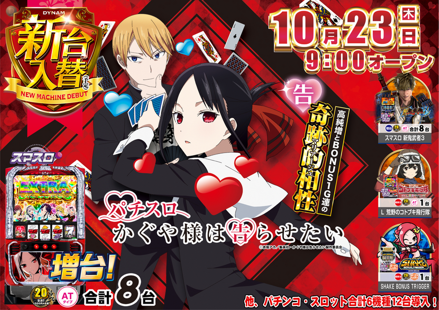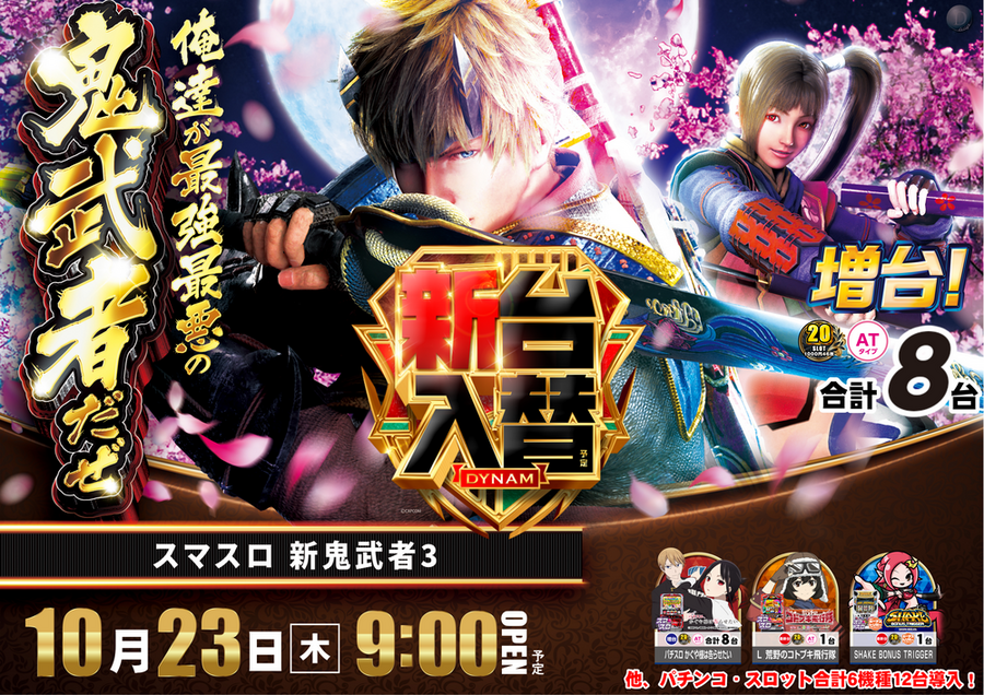 いつも当店ホームページをご覧頂き ありがとうござます 10月23日(木) 新台入替!! 営業開始は朝9:00(予定)です!