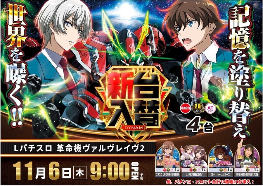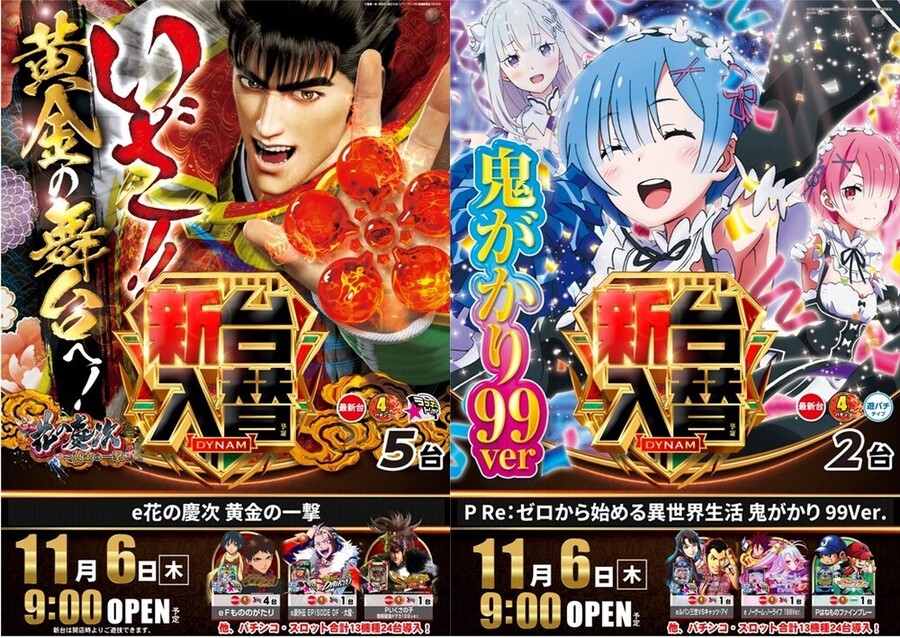 いつも当店ホームページをご覧頂き ありがとうござます 11月6日(木) 新台入替!! 営業開始は朝9:00(予定)です!