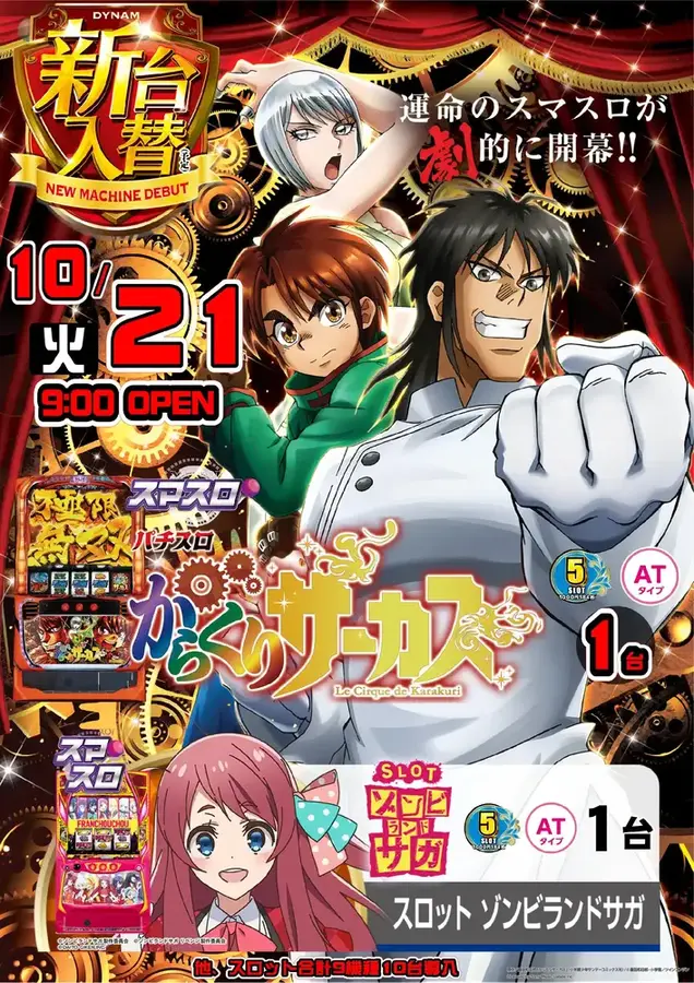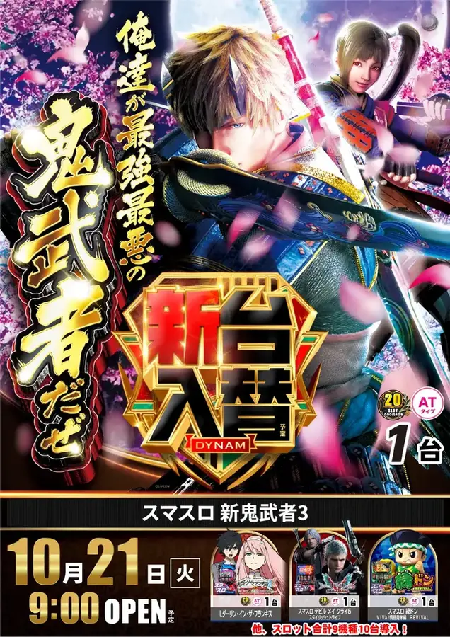 いつも当店HPをご覧いただき ありがとうございます 9月21日(火) 新台入替(予定) スロット 合計9機種10台導入!!