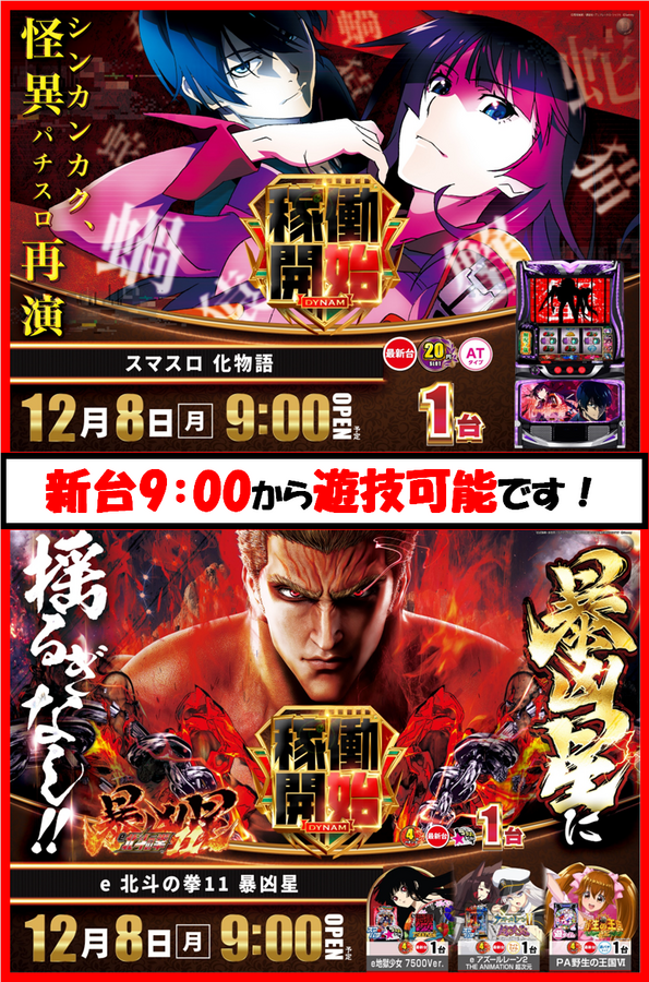 当日は最新台は朝9時よりご遊技できます♪ 皆様のご来店 従業員一同お待ちしております |
