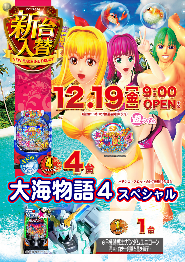 12月19日(金) 新台入替(予定)