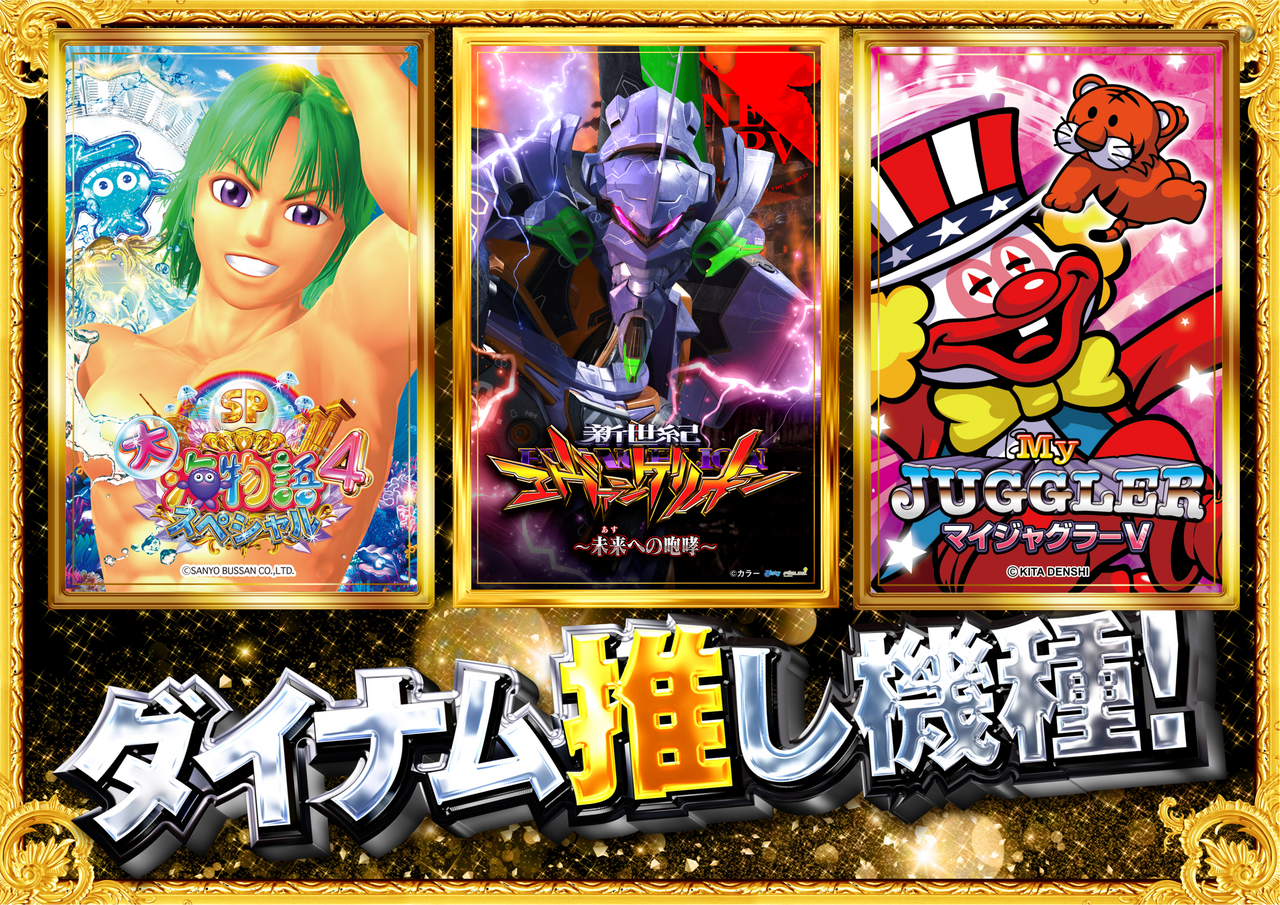 『ダイナム』は、「従来のパチンコ・スロット」を中心にお楽しみいただけるお店です。パチンコをひとつのレジャーとして楽しんでいただける空間をご提供しています。