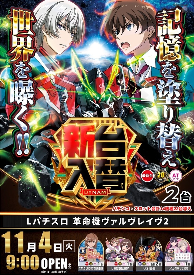 11月4日(火) 新台入替(予定)