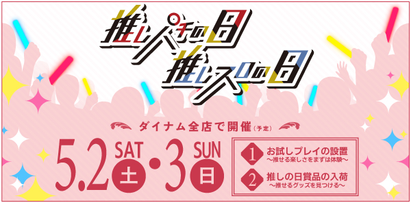 ダイナム、全店で「推しの日」に参加! 5月2日・3日は「お試しプレイ」でパチンコ・パチスロを体験 ~人気コンテンツの限定賞品も登場!~
